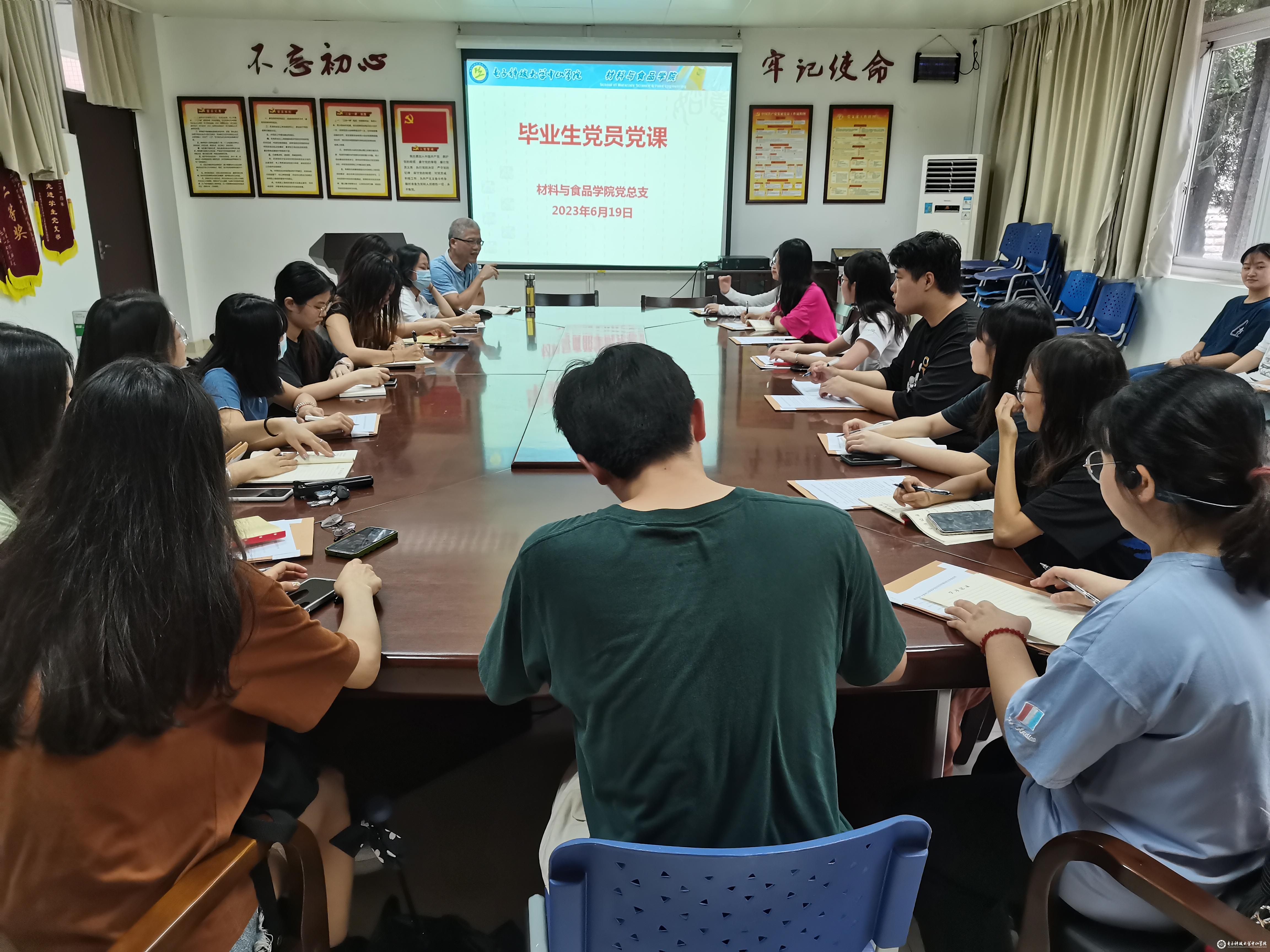 6月20日下午,材料与食品学院在1-110会议室召开2023届毕业生党员党性教育大会,材料与食品学院党总支书记陈永强在会上为全体毕业生党员讲党课。