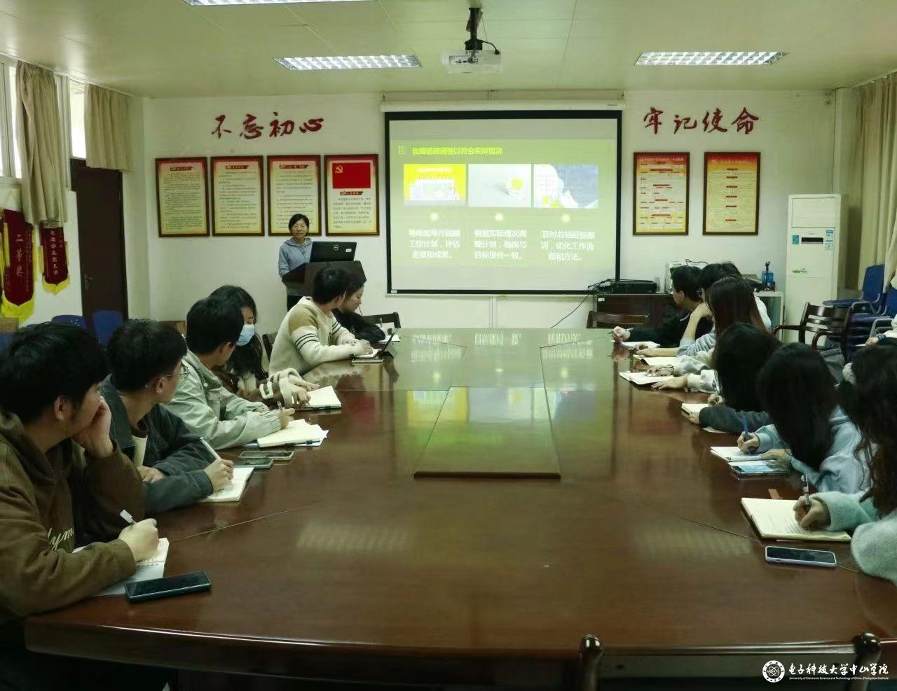 余建萍老师从个人和团队两个维度,详细阐述了学生干部的工作流程及所需能力。她强调了学生干部在工作中应注意的关键点,鼓励大家充分发挥自身优势,不断精进各项基本技能,分析自身工作中存在的问题并及时改进,获得个人成长的同时,推动部门发展迈向更高水平。她还给在座同学介绍了学生干部“为何要做工作计划”“如何做工作计划”“如何落实工作计划”等内容,鼓励大家要有目标意识,树立明确的奋斗目标,以目标增强自我驱动力和责任感,从设定目标,评估资源与时间安排合理性,分解任务、定期复盘等方面,不断提升工作执行力和协调能力,通过与他人分享目标和计划,增加工作执行力,以获得更大进步。