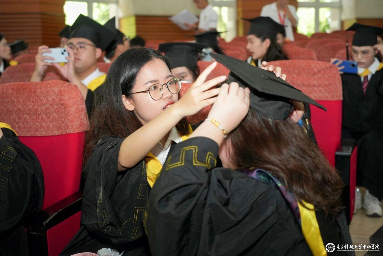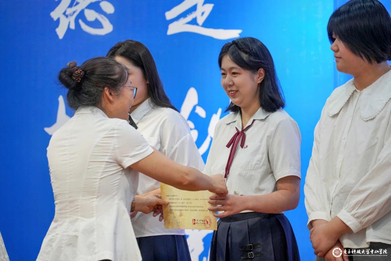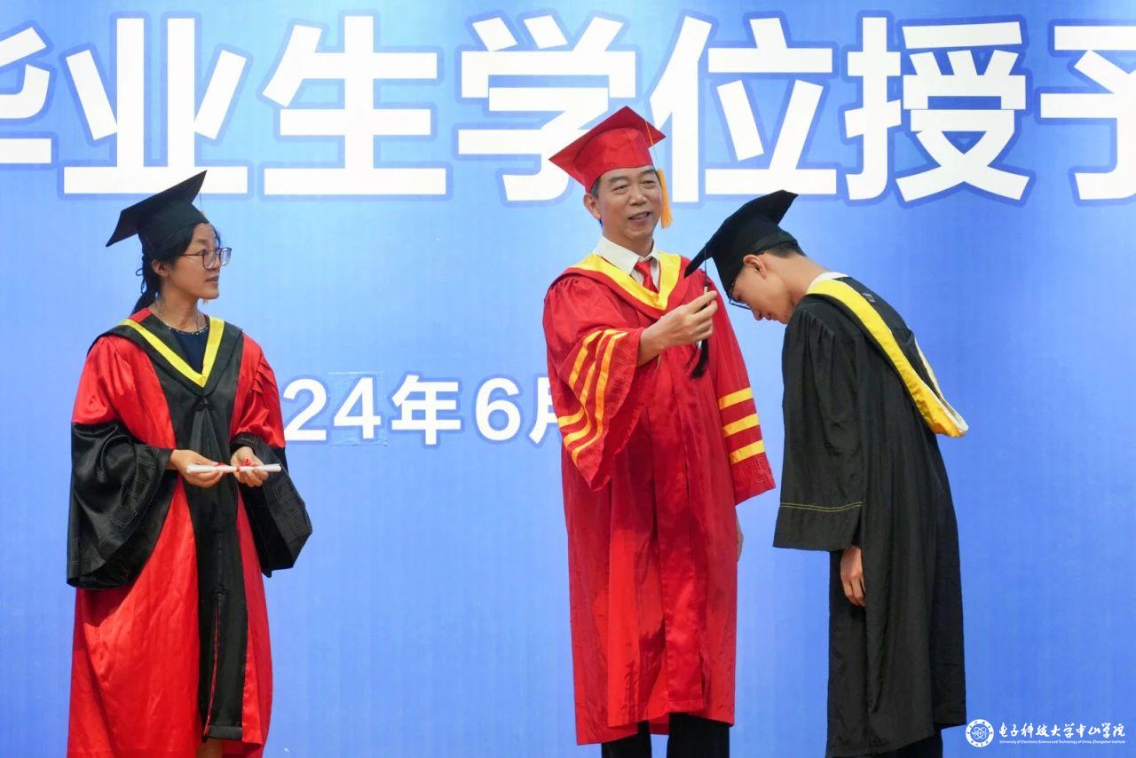 仪式伊始,现场奏唱起激昂澎湃的《中华人民共和国国歌》,陈永强书记宣读了学校《关于表彰2024届优秀毕业生的决定》及 “电子科技大学中山学院优秀毕业生”名单、校级“优秀毕业论文”名单、获“书虫”称号名单和考研录取名单。李琳副院长为优秀毕业生颁发纪念奖品,为我院“书虫”称号和校级“优秀毕业论文”获得者颁发留念证书,现场洋溢着获奖毕业生们的振奋风采与昂扬斗志。