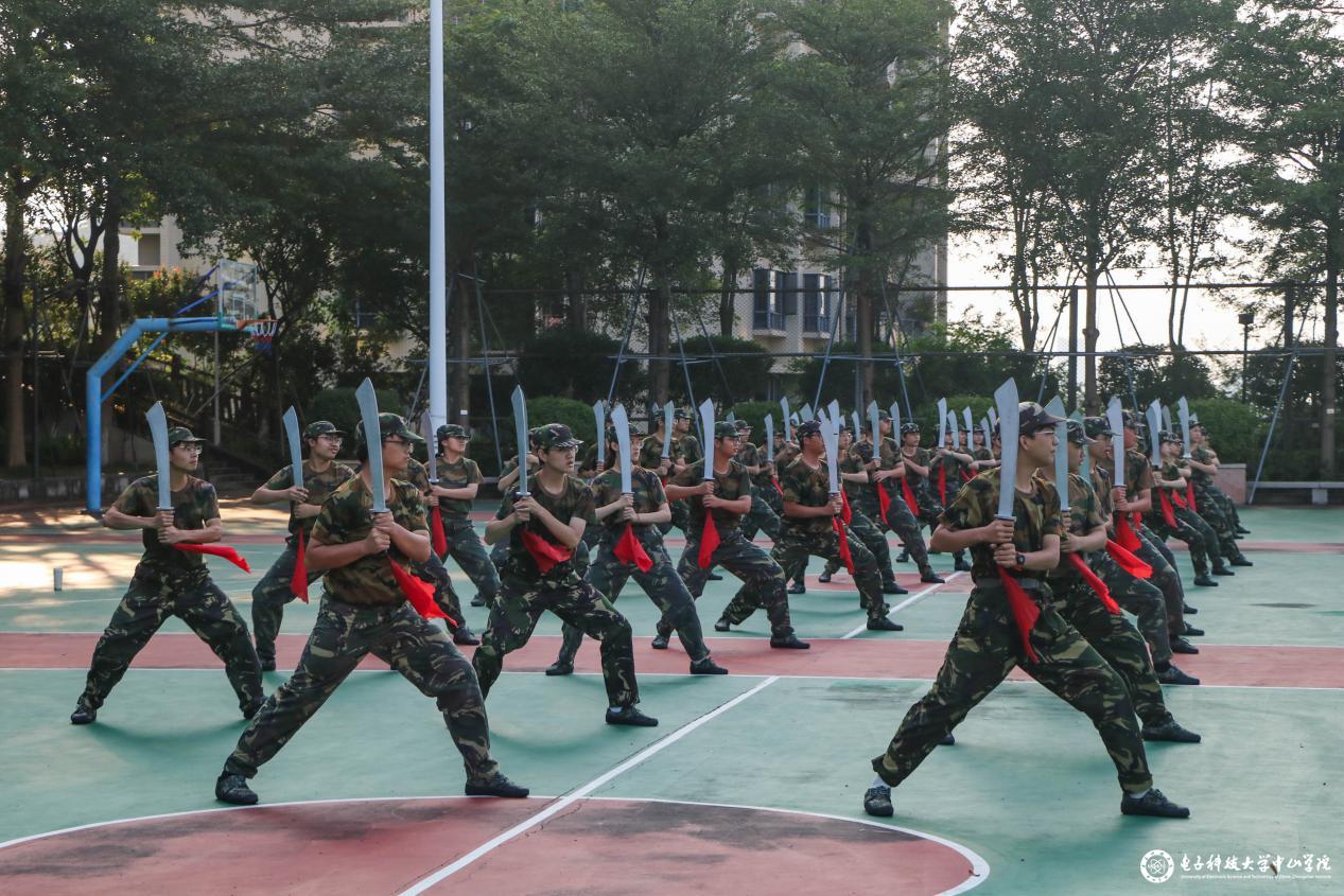 大刀操训练中,伴随着教官的口令,每一个细节都变得清晰有力,所有人团结一心,只为展现训练最好的一面。这不仅是一次培养意志力,增强体能的练习,更是训练班级、团队凝聚力的训练。