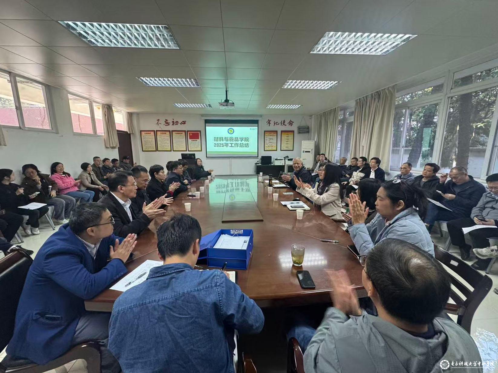 1 月 4 日下午,材料与食品学院于1-110会议室召开2025年度年终总结大会,会议由学院党总支书记陈永强主持,校党委副书记叶立新出席会议。