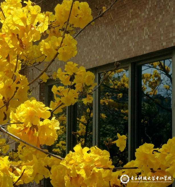 春风轻拂校园,似施下魔法,各色花朵一夜盛放。金黄如日光倾洒,星星点点妆点校园每处角落。