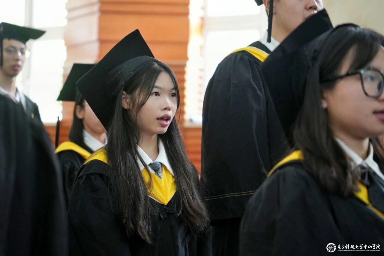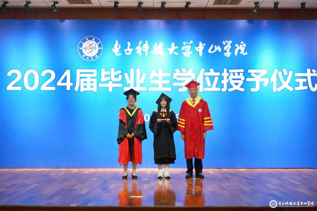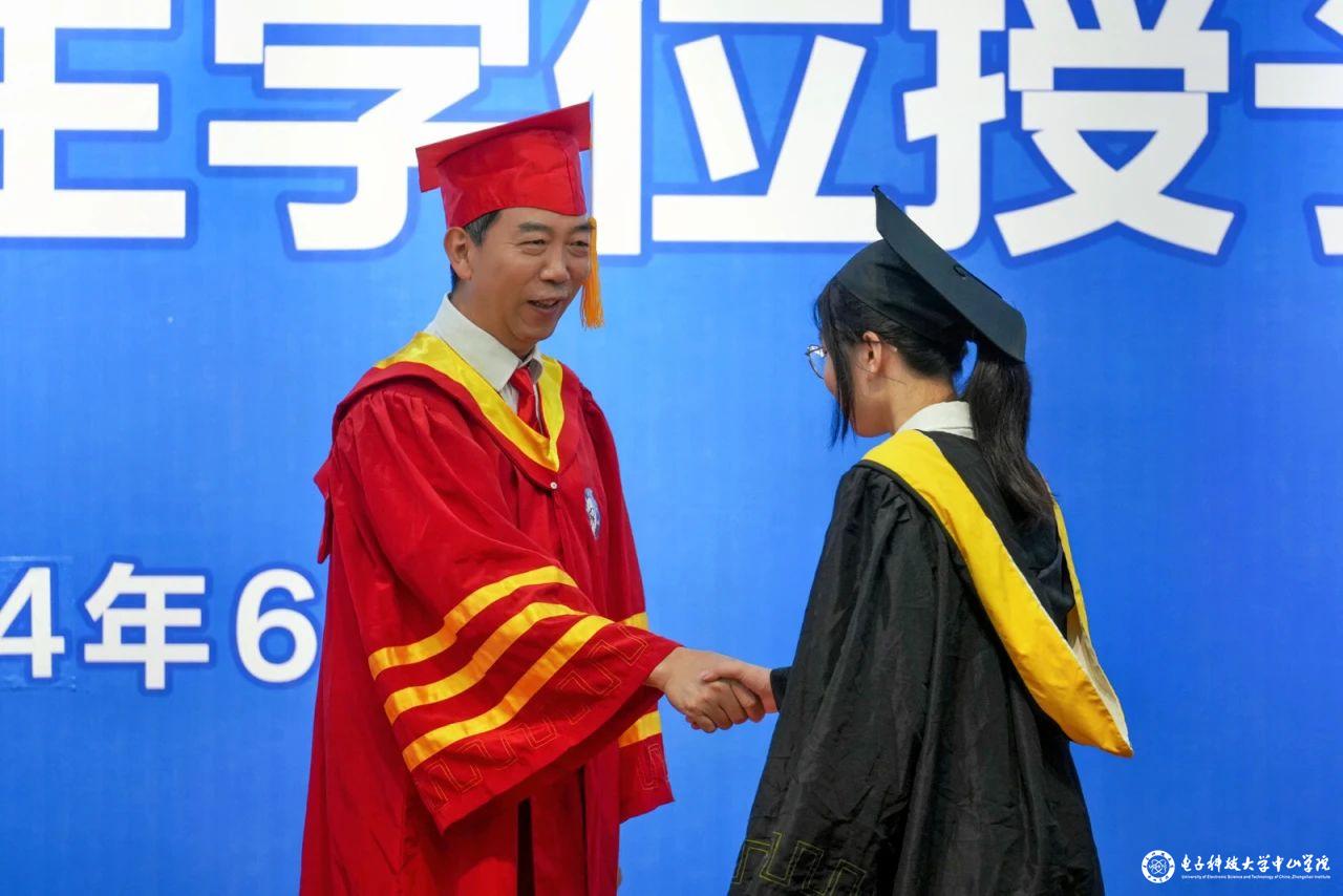 仪式伊始,现场奏唱起激昂澎湃的《中华人民共和国国歌》,陈永强书记宣读了学校《关于表彰2024届优秀毕业生的决定》及 “电子科技大学中山学院优秀毕业生”名单、校级“优秀毕业论文”名单、获“书虫”称号名单和考研录取名单。李琳副院长为优秀毕业生颁发纪念奖品,为我院“书虫”称号和校级“优秀毕业论文”获得者颁发留念证书,现场洋溢着获奖毕业生们的振奋风采与昂扬斗志。