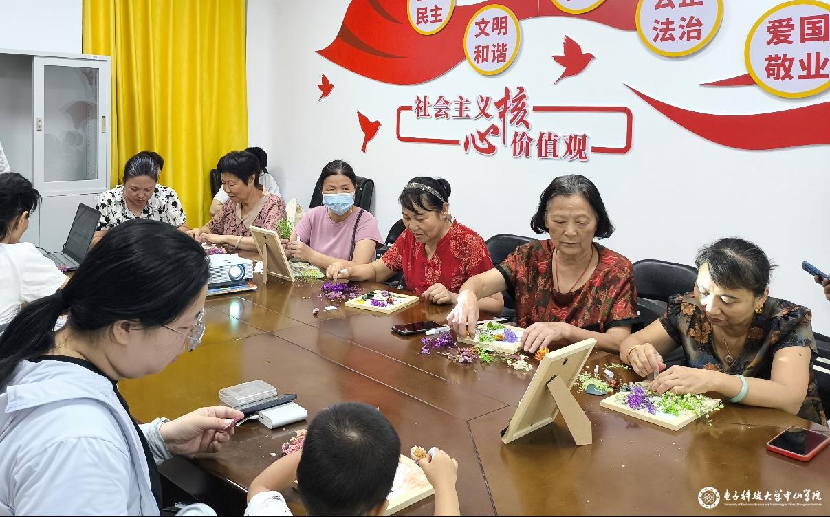 在团队志愿者们的悉心指导下,居民们纷纷动起手来将干花巧妙组合,镶嵌在相框中。每个人都沉浸在创作的乐趣中,现场洋溢着欢声笑语。一个个精美的干花相框不仅是艺术品,更承载着居民们对美好生活的向往和热爱。此次共建活动不仅为群众居民们带来了实用的健康知识,还提供了一个发挥创意、放松心情的平台。无论是鼻炎讲座还是手绘3D作品、干花相框制作,都让大家感受到了知识的力量与生活的美好。