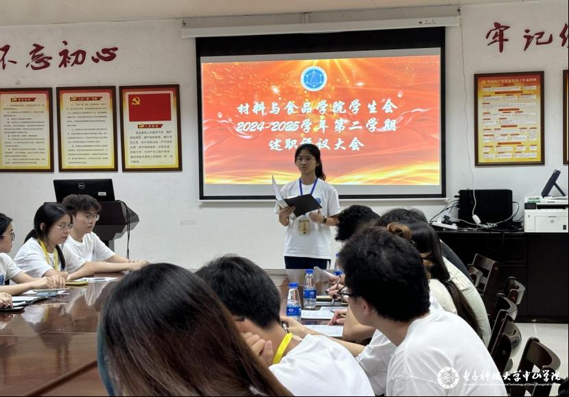 为推进学生会深化改革,系统总结本学期工作实践,精准评估各部门履职效能,持续优化服务师生的质效、赋能学院发展,材料与食品学院学生会于2025年6月6日在1栋110会议室开展了2024-2025学年第二学期述职评议工作。材料与食品学院党总支书记陈永强、学生会指导老师黄知涵、辅导员代表王冠楠及3名学生代表参与了本次述职评议会议。