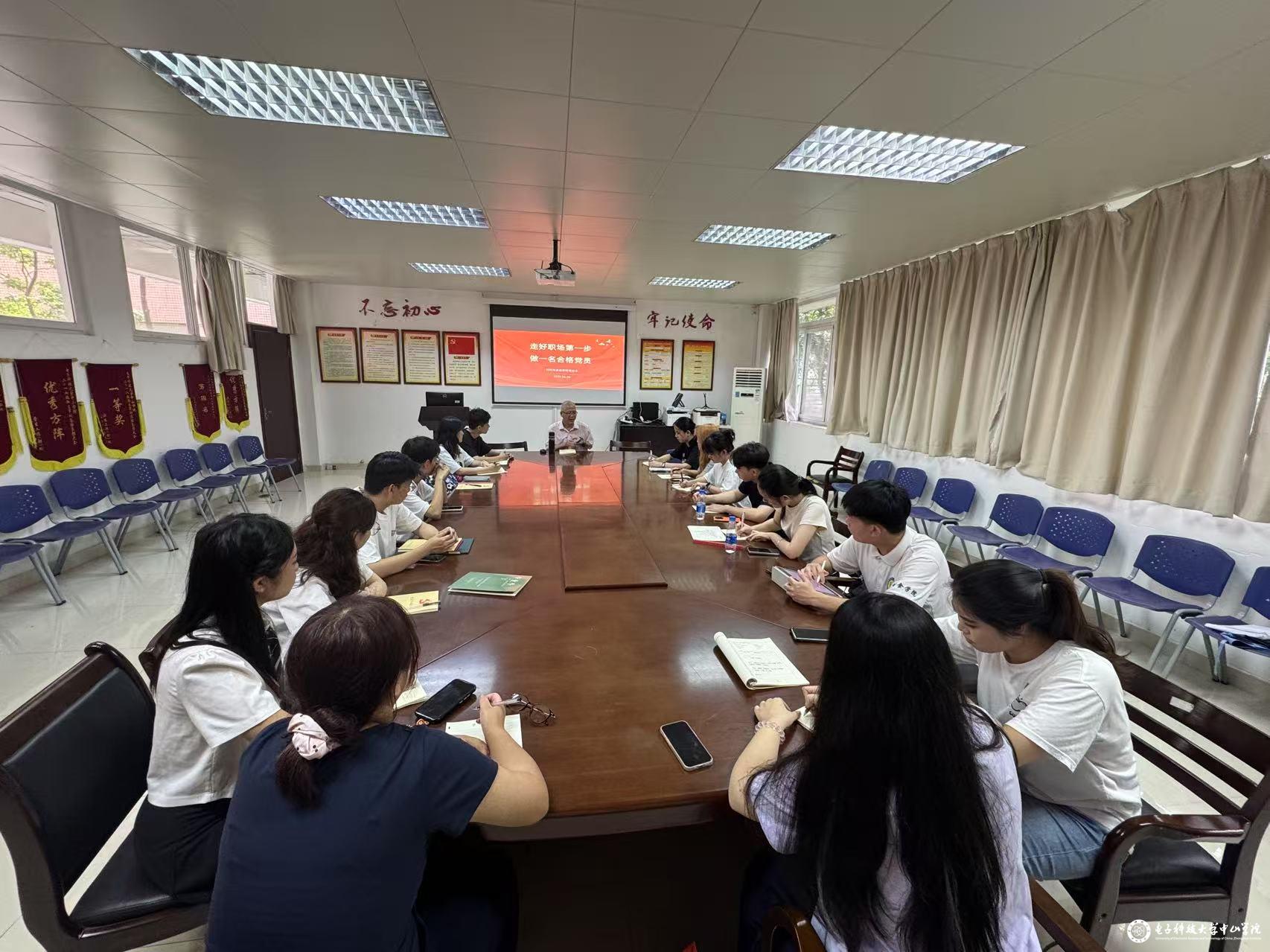 6月26日下午,材料与食品学院党总支在1-110会议室为2025届毕业生党员举办了专题党课活动。党总支书记陈永强老师以“走好职场第一步,做一名合格党员”为主题,为即将步入社会的学生党员带来了一场既有理论高度又贴近实际的生动党课。