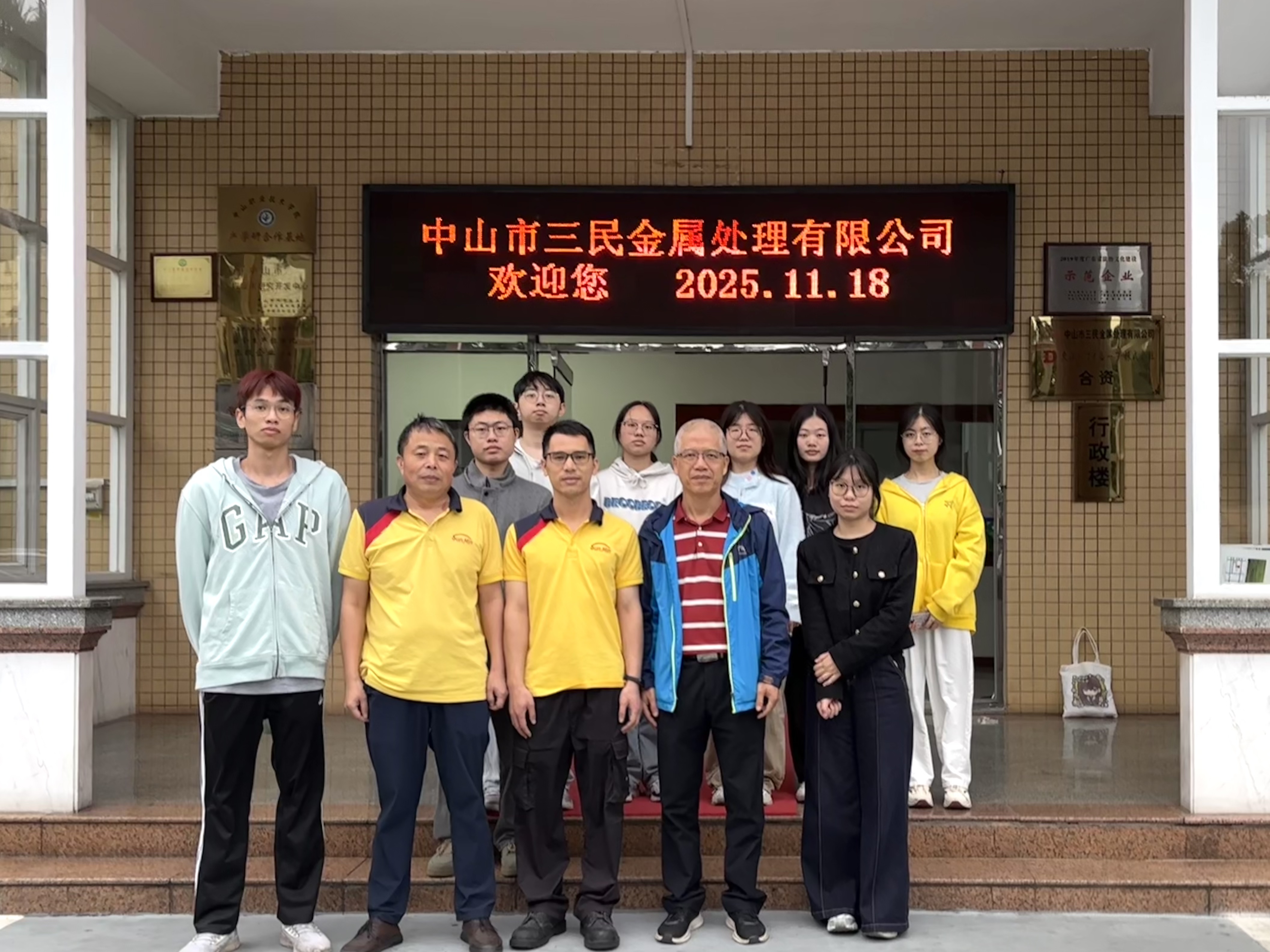 为进一步深化校企合作,拓宽毕业生就业渠道,11月18日,材料与食品学院陈永强书记和就业辅导员张莹莹老师带领6位2026届毕业生前往位于小榄镇的中山市三民金属处理有限公司开展访企拓岗交流活动。