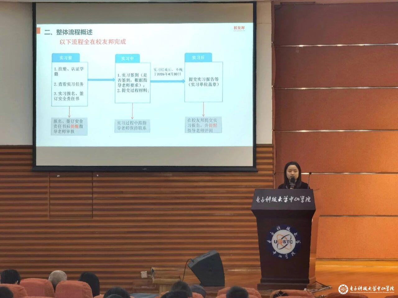 接着,教学秘书徐梦雪老师则为大家详细讲解关于生产实习的课程要求,指导大家规范化填写相关资料,帮助学生熟练掌握实习平台使用方法,确保实习全流程管理的规范性。