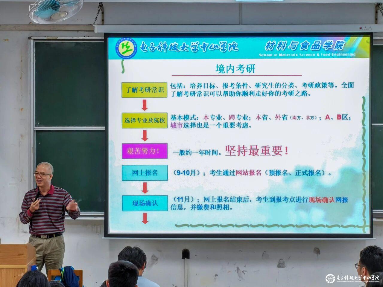 随后,陈永强书记围绕“研究生是什么”“考研利弊分析”“考研难不难”等话题引出考研择校、备考策略等核心内容展开系统讲解,帮助同学们增进对考研基本信息的了解。陈书记特别强调了考研信息的重要性,指出不同高校及专业的考查重点各有差异,他还就以华南农业大学的硕士研究生招生信息的查阅为例提醒同学们应尽早研读目标院校的招生简章、招生目录,明确考试要求,避免盲目性,做到科学规划、精准复习。